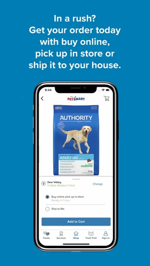 • With in-app shopping, you can get all your pet essentials in one place. In a rush? Get your order in 1 hour with buy online pick up in store.