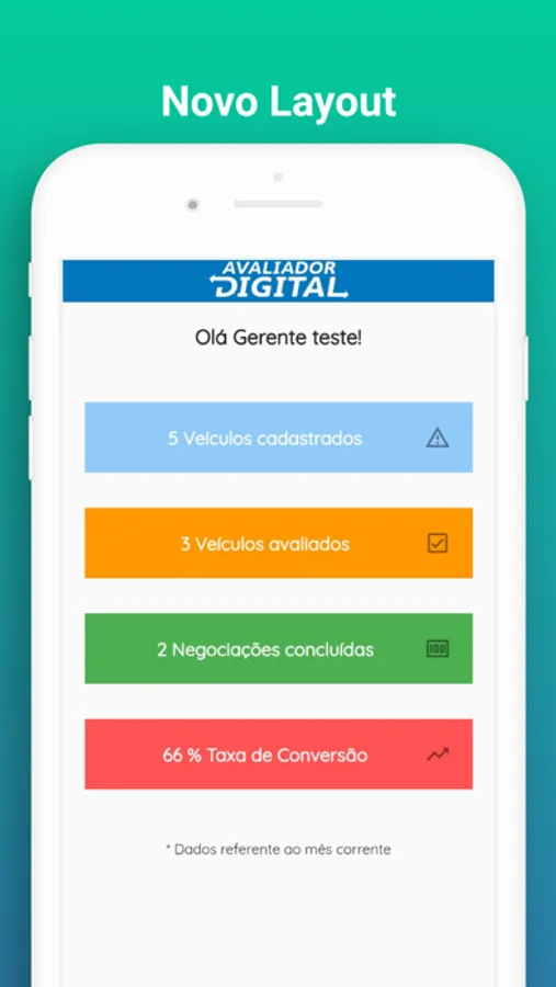 O Avaliador digital otimiza e documenta todo o processo de avaliação de veículos usados de sua concessionária, uma forma simples para acompanhar todo o processo de entrada de um veículo usado, fácil acesso em todo histórico de compra e geração de importantes relatórios, tornando-se uma ferramenta de extrema importância para tomada de decisão nos negócios.