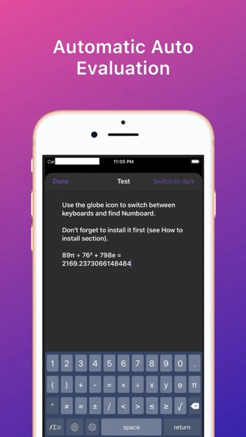 Numboard is the all-in-one keyboard for math and science. More than 110 math symbols, plus advanced autocomplete for math expressions. Your expressions will be evaluated as you type!