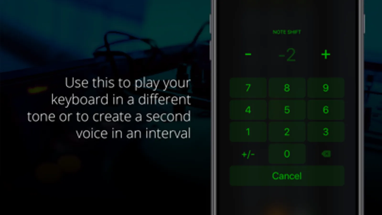 This simple MIDI effect app for Audiobus 3 allows you to transpose notes. You can shift by octaves and half-tones. This is useful if you want play an external keyboard in a different tone. You can also use it to create harmonies, i.e. create a second voice in an interval. Since this app is so essential, you can get it for free.