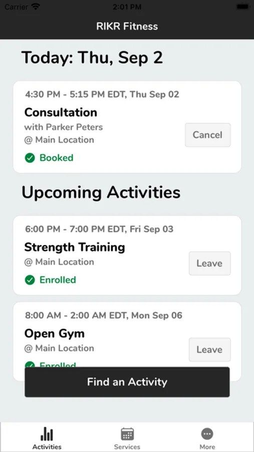 Checking in and out of classes has never been easier than with the new RIKR app. With our client app you can check on class times, see who is teaching the class, and stay up to date on the schedule with real time notifications. Check on your favorite class times and sign up. Class full? No problem. You can now put yourself on a waitlist and receive notifications through the app in the case of any cancellations. Can't make it to class? No problem. You will now be able to cancel your reservation from your phone. You will receive real time notifications to your phone about any changes to the gym schedule. If there is a change in times, class cancellations, or change in instructor your phone will notify you within minutes. Scheduling. It's never been easier!