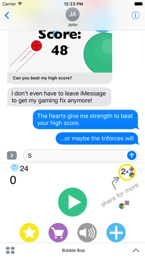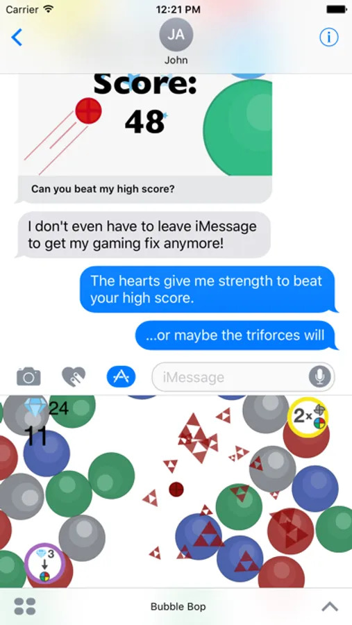 To play: Open your app drawer in iMessage, tap Bubble Bop, and prepare for fun!