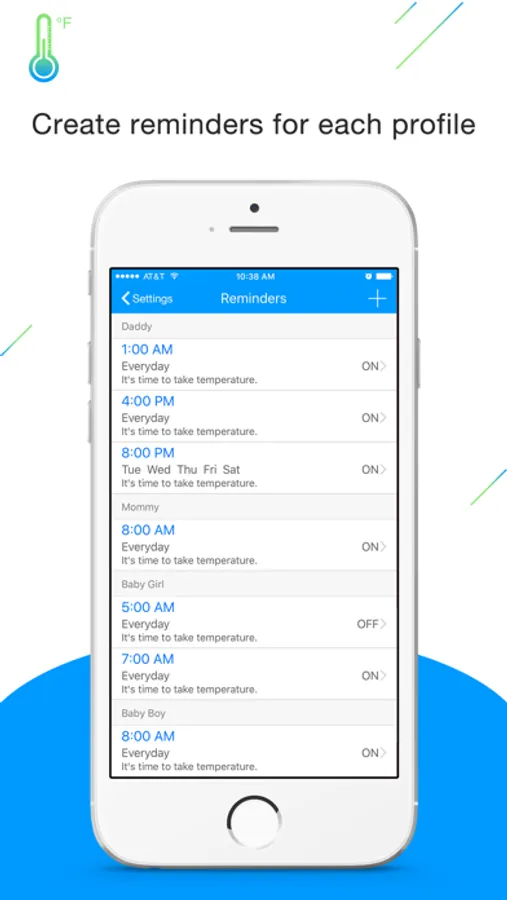 ⁃ Add unlimited reminders to take temperature, take medicines or do other things.