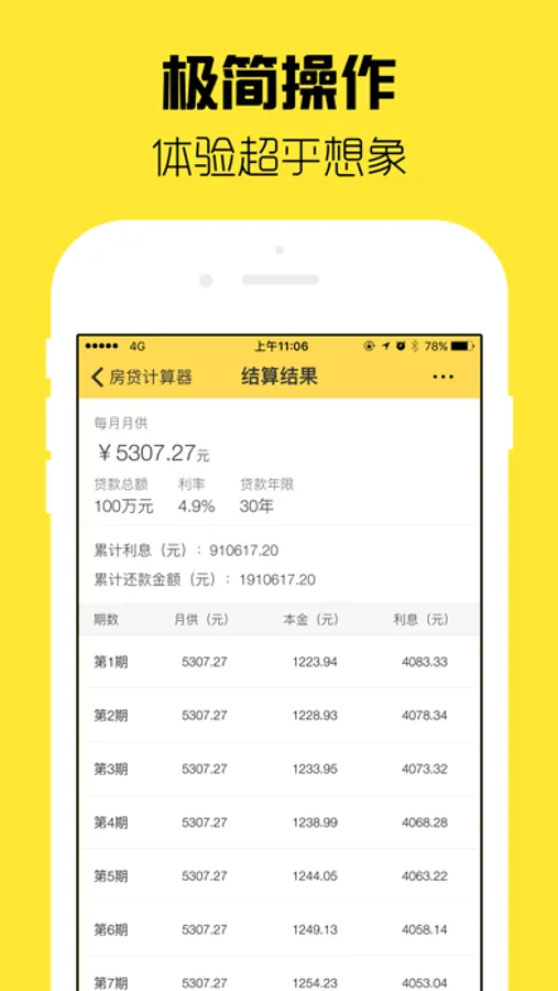 能够根据您的贷款金额、年限,精准的分析出您的月供构成