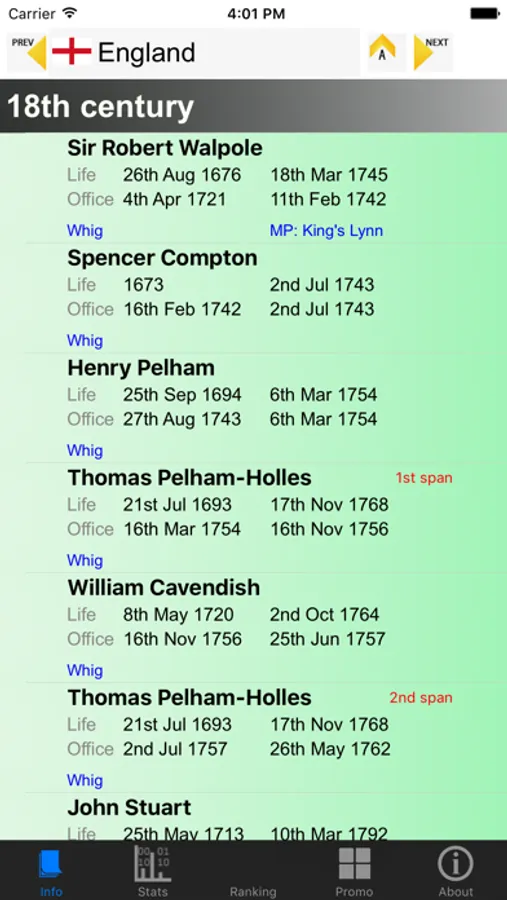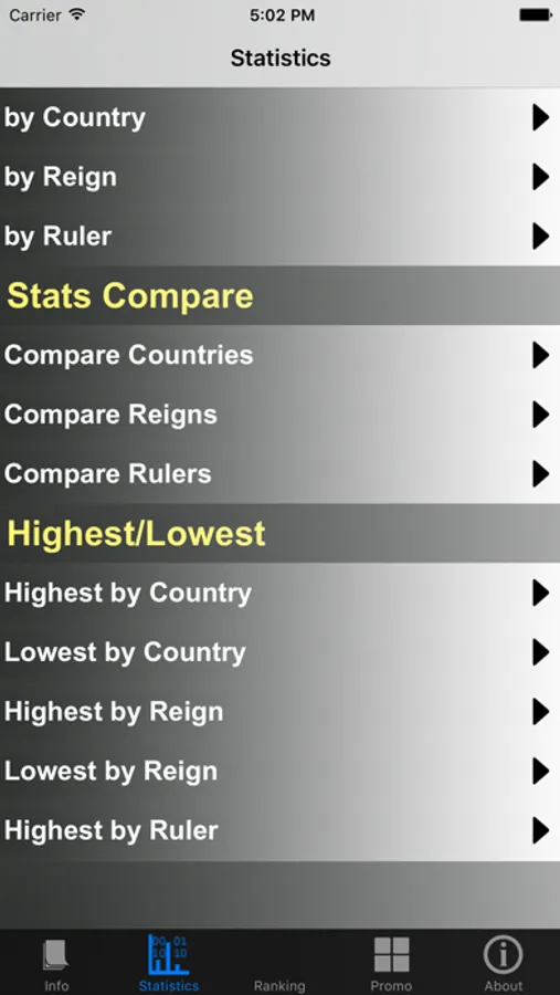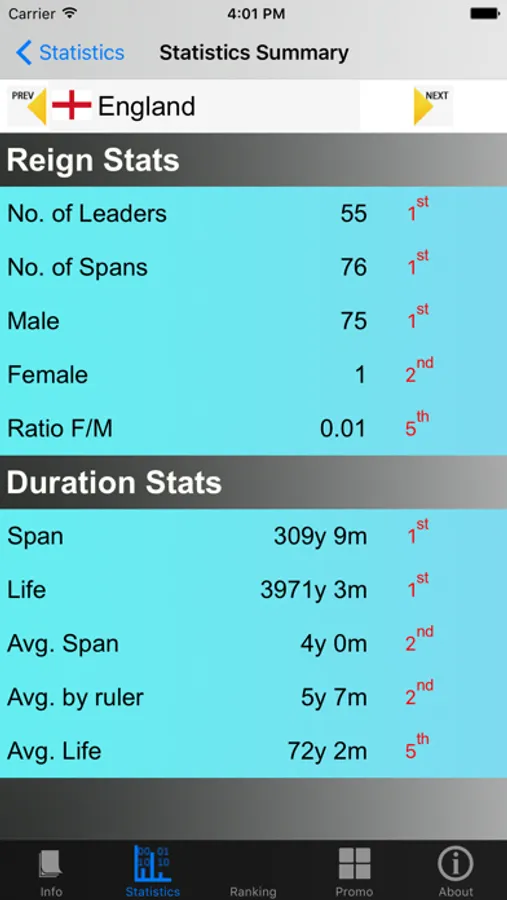 * Highest/Lowest stat records by Leader, by Span and by Country