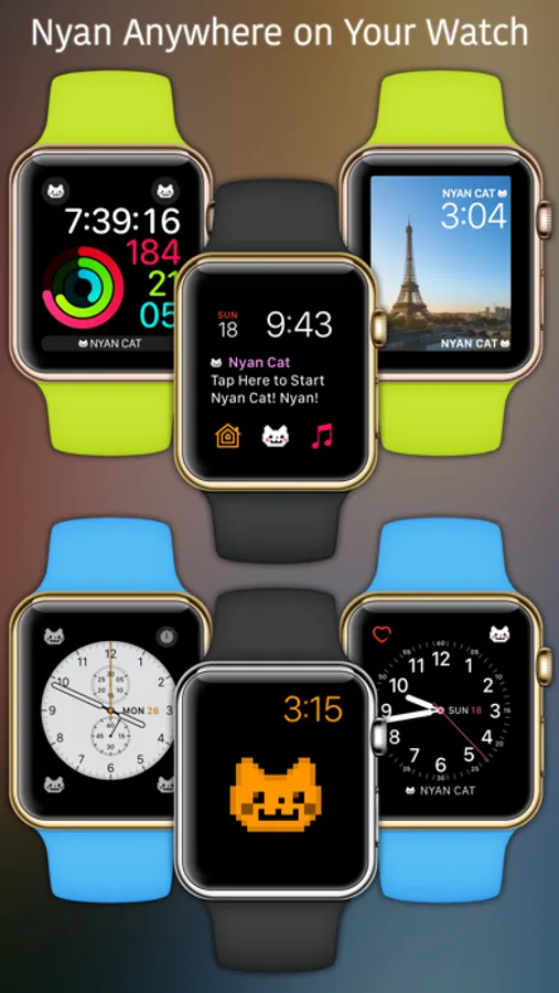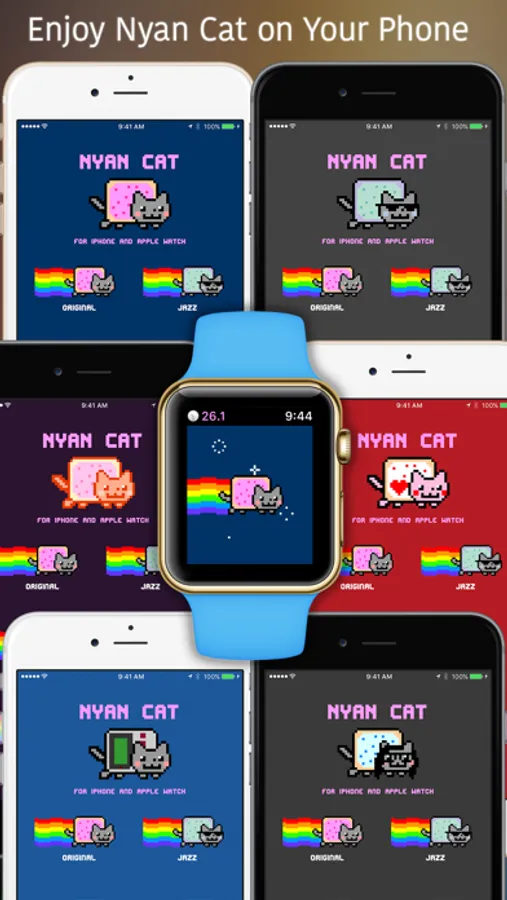 Enjoy watching and listening Nyan Cat in many different styles on your Apple Watch. While you play, study, or exercising.
