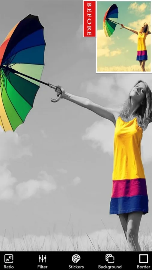 Using this photo effects app, you can create an awesome color splash effect and you can even use this as a photo editor.