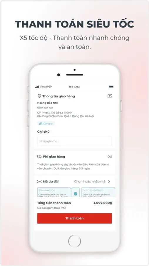- Hỗ trợ thanh toán tiền mặt khi nhận hàng (COD)