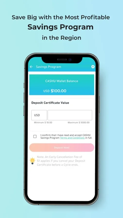 Are you into savings? Buy your deposit certificates through CASHU App and gain profit of up to 25% annually with the first savings program of its kind in the region.