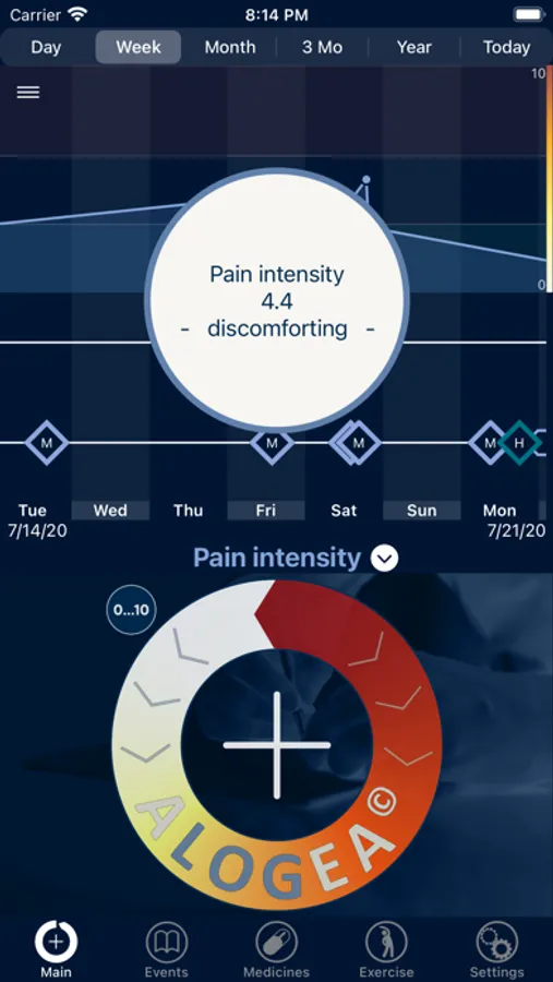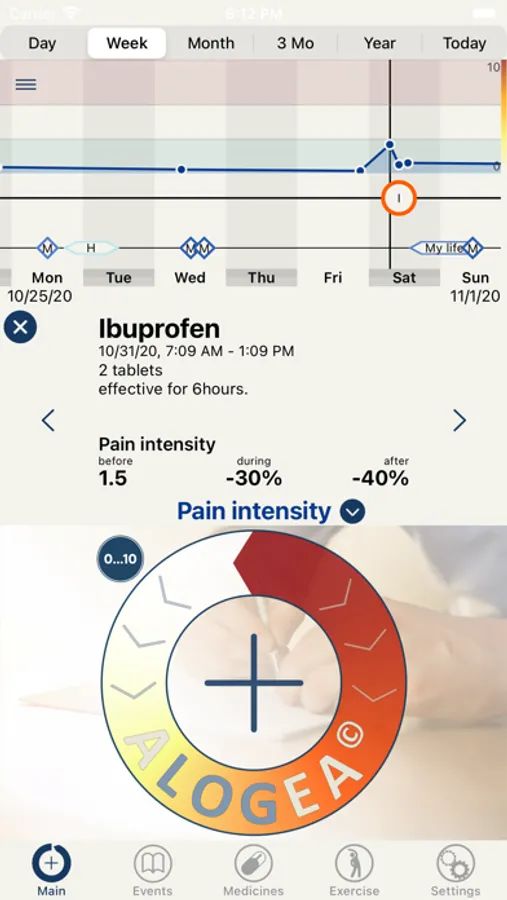 Alogea is focused on the impact of medicines and events on symptoms. These may be treatments, weather events, exercises or anything that matters to you.