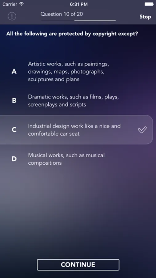 There are a total of 140 questions in this app. The practice exam is presented in short quizzes consisting of 20 questions to help you to memorize the professional practice concepts easily.
