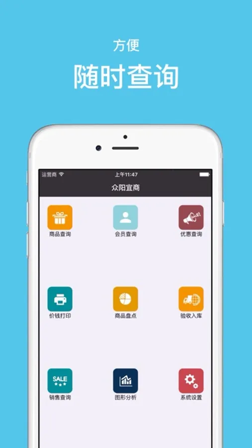 “众阳ERP”是一款零售企业员工及管理层应用软件,主要实现员工及管理层通过手机app方式,录入业务单据,打印价签条码,查询业务报表等功能,是对零售业pc电脑端应用的扩展,方便员工及管理层人员信息的查询,及业务的处理,是操作人员,可以随时随地的工作,方便操作人员信息的查询,就业务的处理。