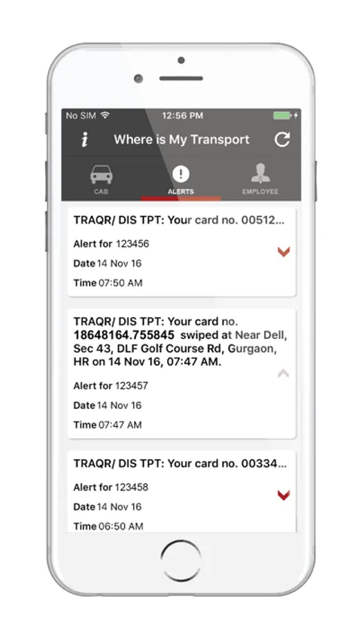 • Push Notification Alerts for all transport activities – pickup/ drop scheduled, cab departed for