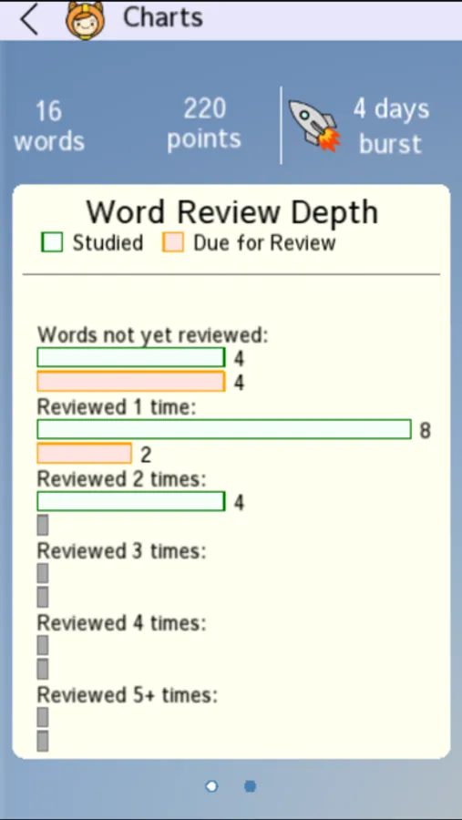 A special SRS (Spaced Repetition System) learning engine automatically sets the review schedule for each word, gradually increasing the period of time until the next review as your results improve. SRS in a method of learning based on studies of human memory that is particularly effective for word-related learning.