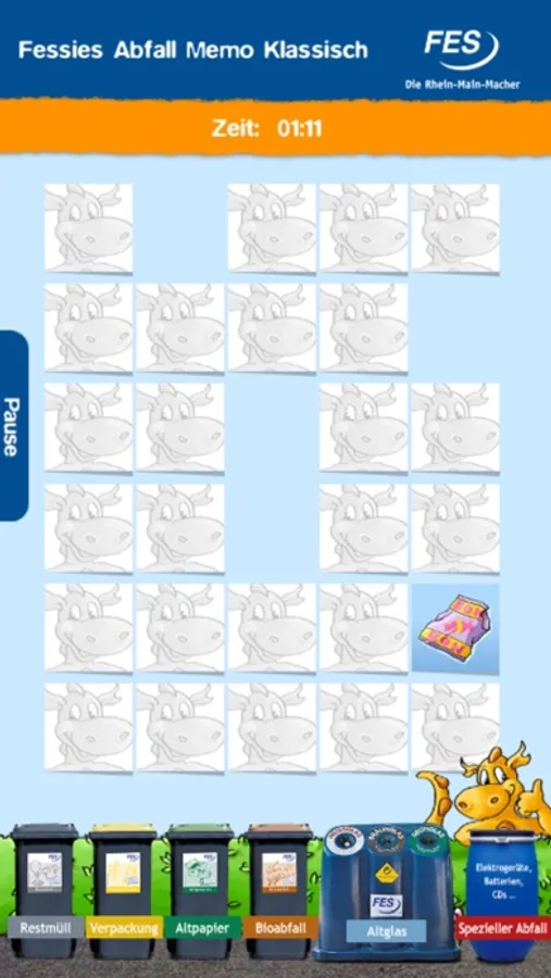 Mit Fessie spielerisch die Mülltrennung üben und dabei auch das Gedächtnis trainieren. Schon Kindergartenkinder lernen mit diesen Memo-Spielen, wie Abfälle richtig sortiert werden.