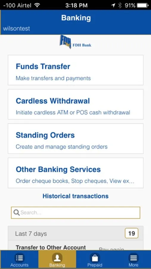 With FDH mobile banking, you can perform all your banking services which include transfers to other accounts, purchase airtime, purchase prepaid electricity, Pay your bills, initiate cardless withdrawal, access your FDH wallet and many many functions