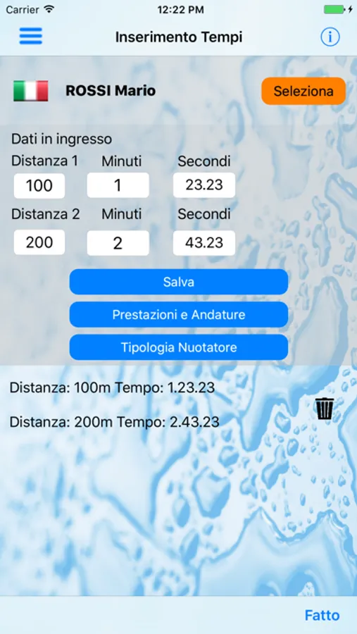 A partire da due prestazioni note, ottenute su distanze diverse nel medesimo stile di nuoto, la app consente di calcolare la miglior prestazione possibile di un atleta su qualsiasi altra distanza dello stesso stile, sia in termini assoluti (dati di ingresso = record personali sulle due distanze), sia in termini relativi alla condizione del momento (dati di ingresso = tempi nuotati in una occasione recente).