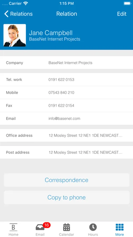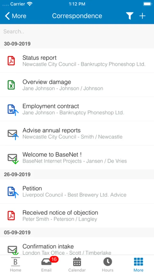 The BaseNet app provides access to your work account anytime and anywhere. By logging in to the secured environment, you can easily access your most important data, including: