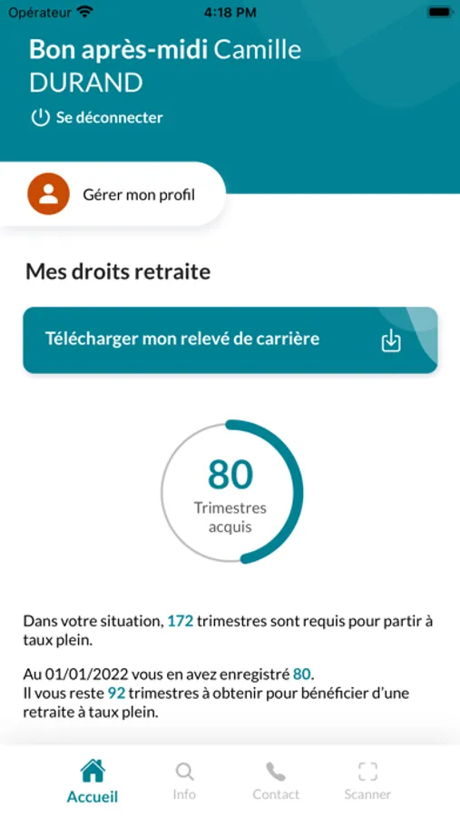 - visualiser votre carrière, quelles que soient vos activités (fonctionnaire, salarié, indépendant...), et vos droits à la retraite (nombre trimestres et de points cotisés)