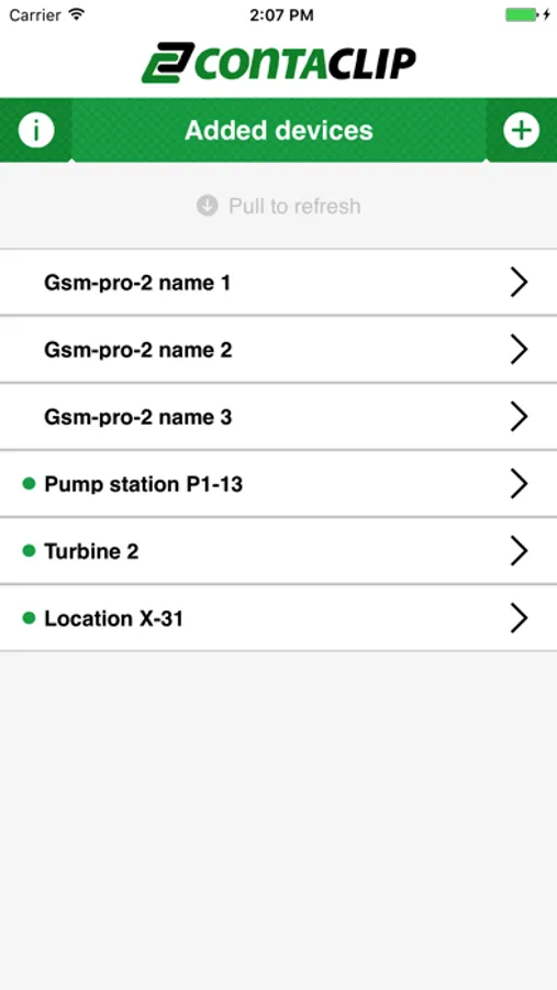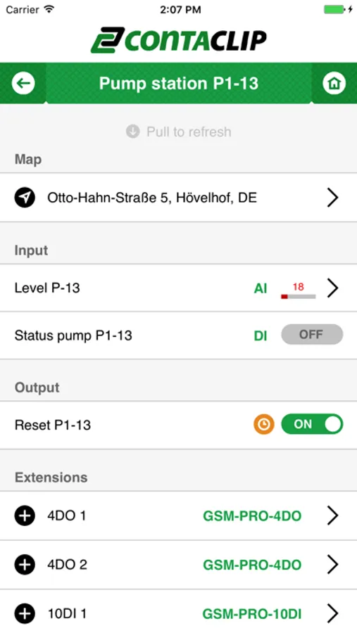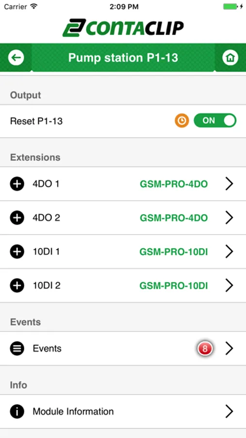 CONTA-CLIP‘s smartphone app for the GSM-PRO2 SMS relay provides a simple and fast solution to monitor and control one or more modules in the field. The app shows the status of all inputs and outputs of all connected GSM-PRO2 modules. Switch on your heater, fan or water pump simply by clicking a button. The app buttons provide intuitive control.