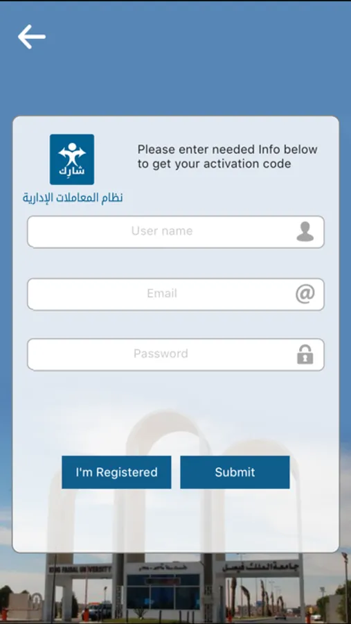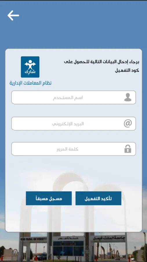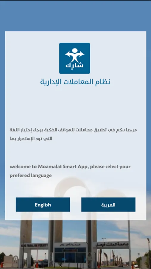 تطبيق شارك على الأجهزة الذكية هو احد واجهات نظام شارك للمعاملات الإدارية بجامعة المللك فيصل واللذى يمثل الشريان الرئيسي لحركة المعاملات بين جميع كليات وإدارات وقطاعات الجامعة بهدف المساهمة في سهولة إتخاذ الإجراءات على المعاملات وسرعة إتخاذ القرار المناسب حيالها