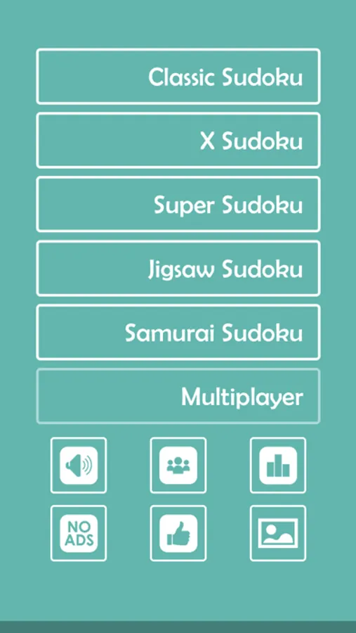 ⊲ Five levels of difficulty for different kind of Sudoku type: Classic, X, Super, Jigsaw and Samurai.