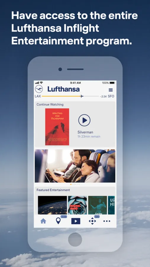 With the LHSecondScreenApp you can extend your Lufthansa Longhaul Inflight Entertainment experience into a new digital dimension. Easily control your seat screen with your own smartphone or tablet and choose from a constantly updated and ever-changing range of movies, audiobooks, music and more.