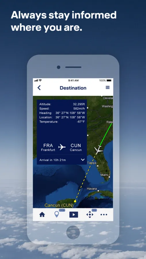 The LHSecondScreenApp also provides you with up-to-date flight information and the location of your flight on a map.