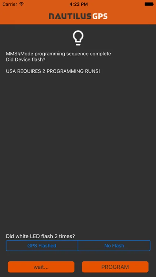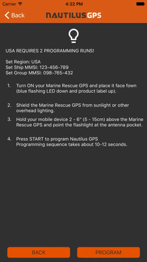 The Nautilus GPS App uses your iPhones camera flash to set an MMSI number into your Nautilus Marine Rescue GPS.