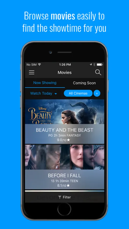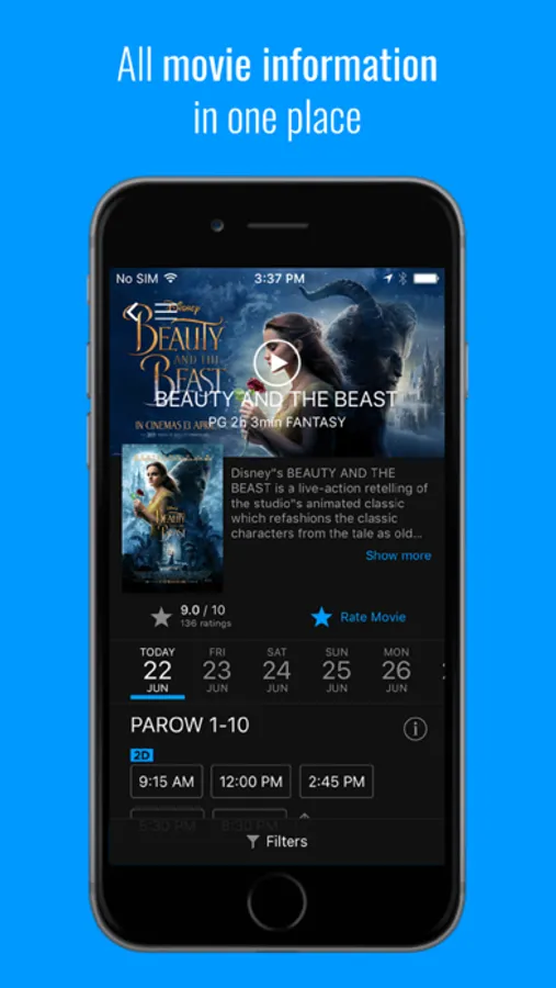 This app allows you to book a ticket to experience your favourite movies on the different cinema experiences, by selecting a movie, cinema or show type.