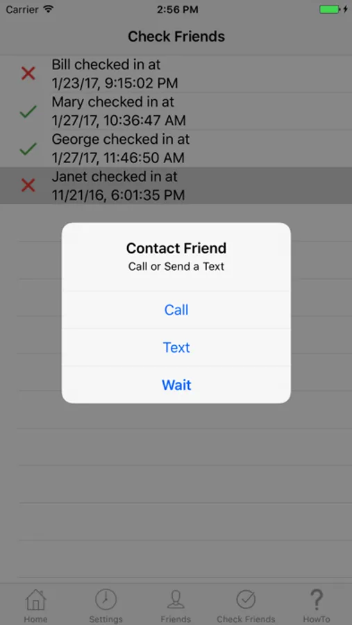 It's simple! Form a group of friends who really care about each other. Then download CheckInOK to each friend's phone and enter your friends' phone numbers and the times you want to be reminded to check in and check on your friends. That's it! CheckInOK will alert you via notifications and will lead you through the process. If a friend hasn't checked in yet, you can text or call them from the app.