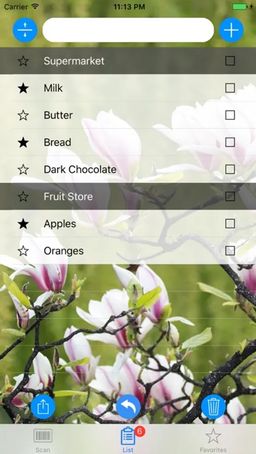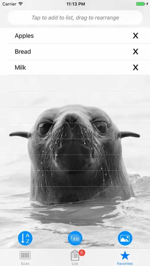 IdeaList has a barcode scanner, so that in addition to adding items manually, or from your favourites you can just scan the barcodes of whatever it is you're running out of.