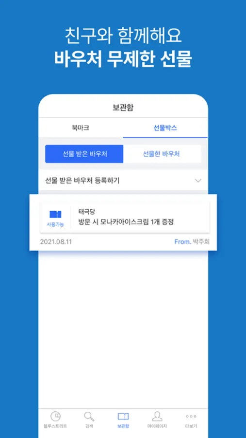 : 앱에 수록된 모든 매장에 방문만 해도 메뉴를 제공하는 바우처와 1+1, 할인 등 2,600여 개의 다양한 혜택을 오직 블루스트리트 회원에게만 제공합니다