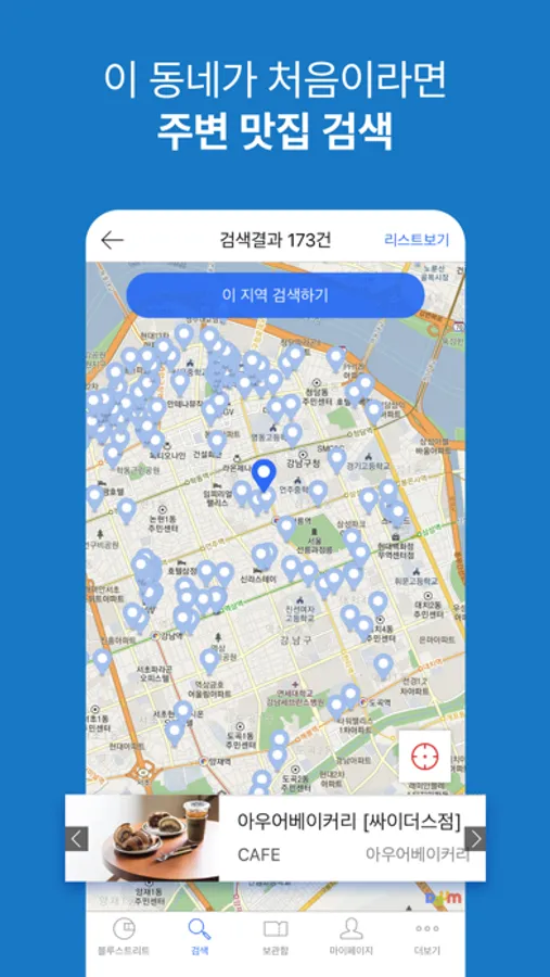 : 내가 위치한 곳의 근처 힙플레이스, 지역별로 분류된 편리한 검색 기능으로 어디 갈지 해멜 필요가 없어요
