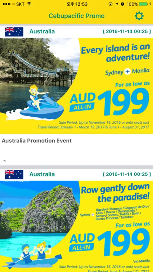 We will notify you of Cebu Pacific Promotions notifications in real time.