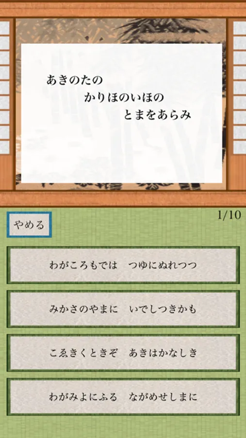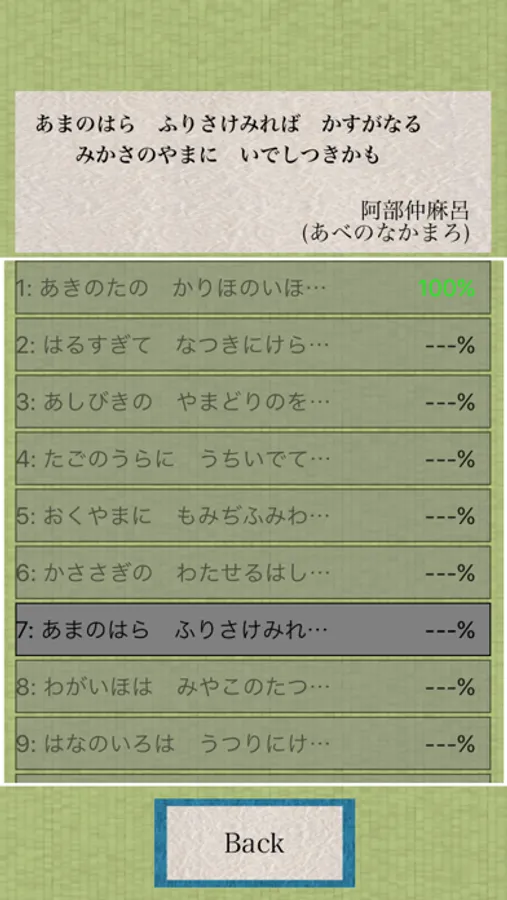小倉百人一首を覚えたり、確認するためのアプリです。