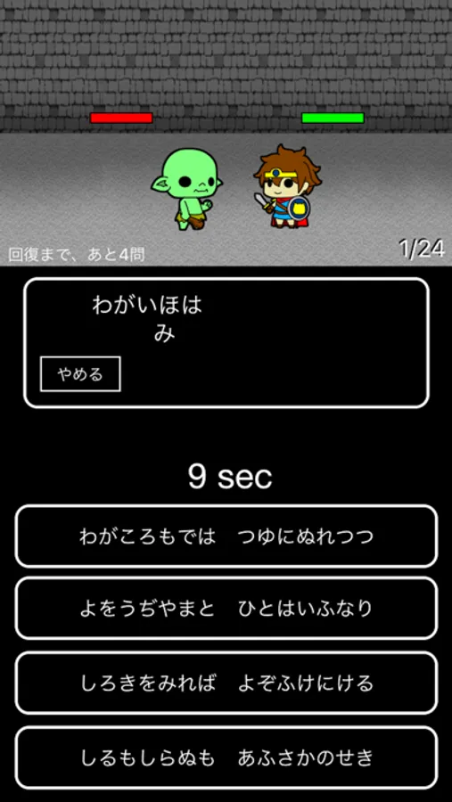 問題は4択クイズで出題されますので、答えだと思ったボタンにタッチして下さい。