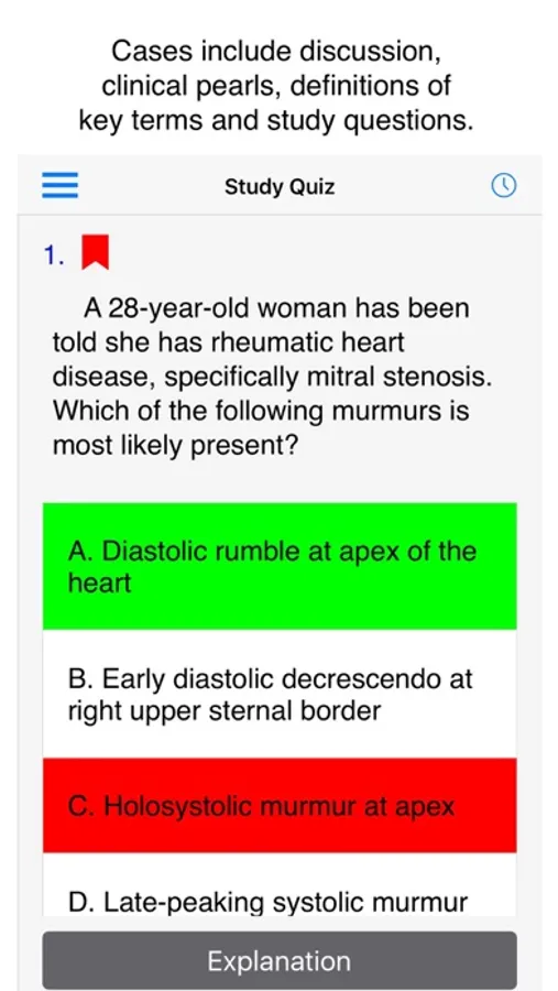 -Study/Exam/Bookmark modes are available for board-style review questions.