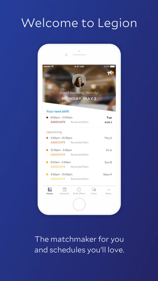 Engage and empower your team with the Legion Mobile app. In just a few taps, team members can keep you updated on their work preferences and availability, and Legion ensures that they are factored in the next schedule. Notify team members when work schedules become available. Send targeted shift offers to team members in real-time, drive team participation and ownership while fulfilling open shifts and callouts.