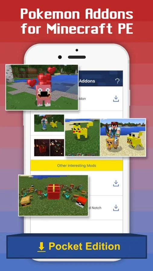 Minecraft PE edition finally brought Addon feature in its 0.16.0 version! So you can now add lovely pokemon mods to your Minecraft worlds. In this app, we also provide other different addons to make your gameplay much more interesting!