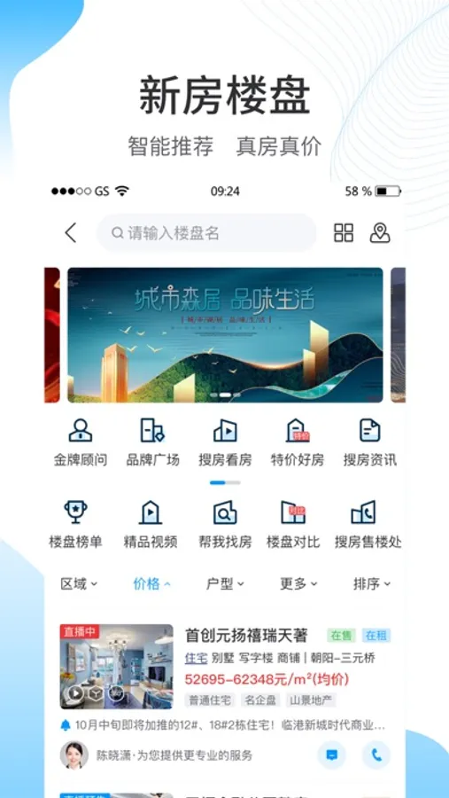 便捷易用的个性化找房体验,定位查找附近优质房源、二手房、租房、小区、房价等多种选房维度随心切换,房源搜索结果匹配买房需求智能排序展示。