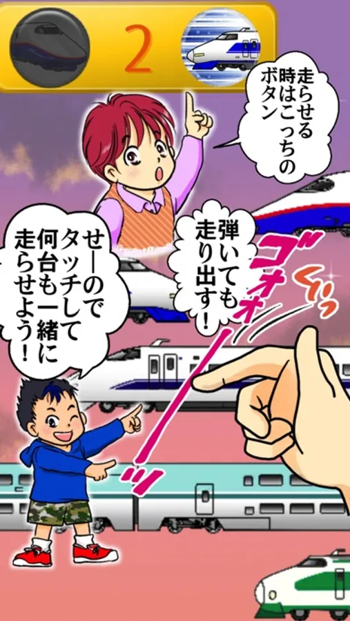 When the shinkansen trains that appears on the screen are touched, they start moving!