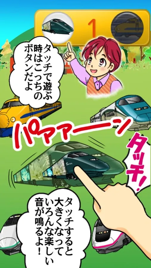 When the shinkansen trains that appears on the screen are touched, they start moving!