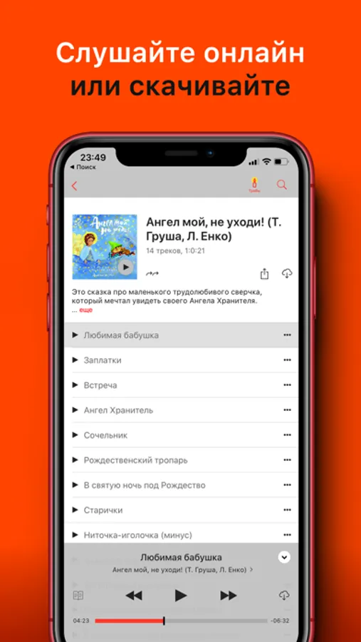 Слушайте онлайн или скачивайте любимые аудиосказки, чтобы не зависеть от интернета, делитесь с друзьями ссылками на книги или главы.