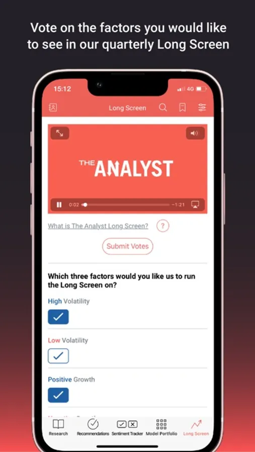 • Ability to vote on the factors you would like to see in our quarterly Long Screen.