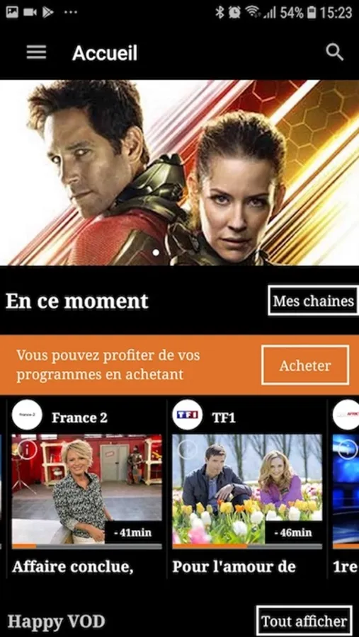 - regardez les chaînes live accessibles en 3G/4G et Wi-Fi