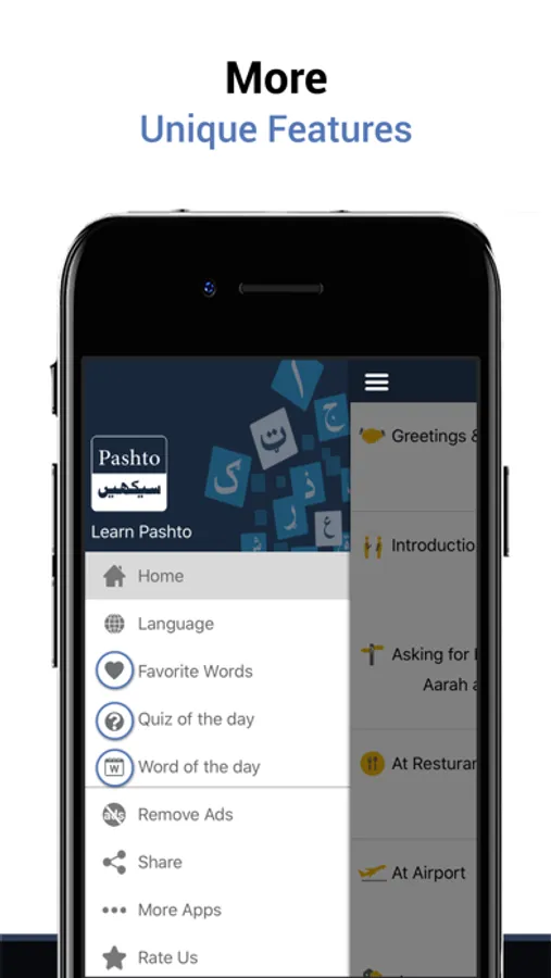 Learn Pashto is an educational App, which is designed to facilitate the non-Pakhtoon users with the connotations of Pashto literature. This smart phone App is for the convenient facilitation of those users who are keen seekers to learn Pashto language in easy way.