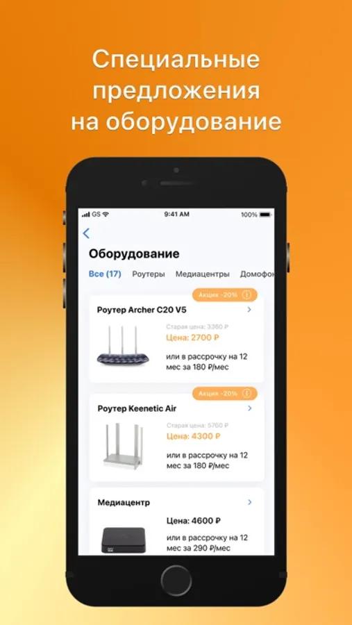Приобретать оборудование- оформите рассрочку или оставьте заявку на установку нового роутера или медиацентра в разделе Оборудование.