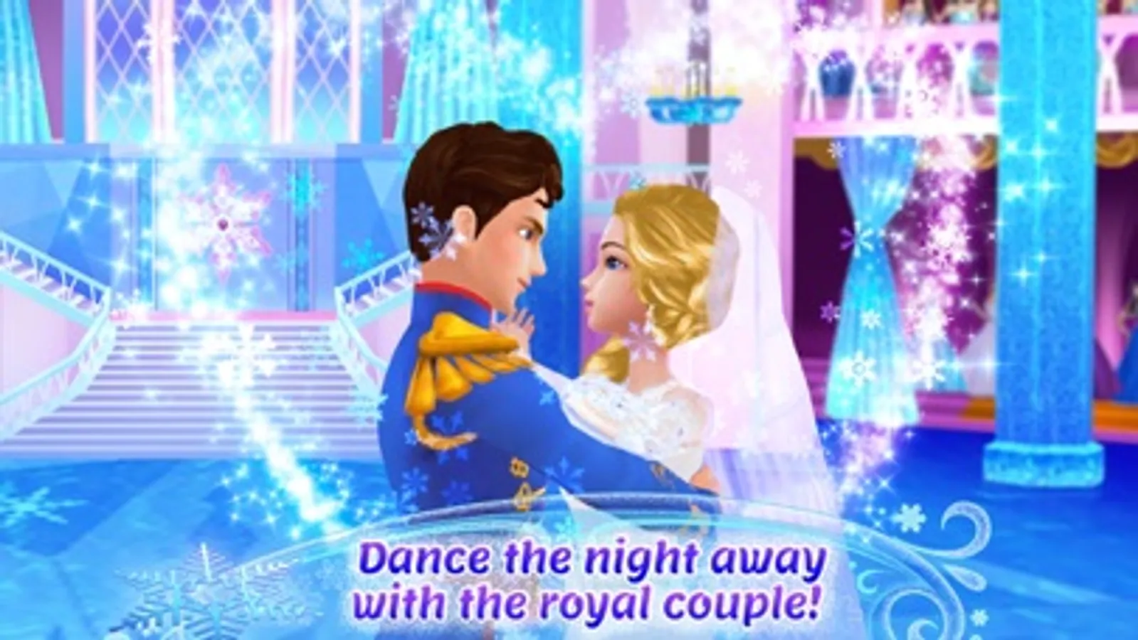 ~~> Design a magical icy wedding hall, dress the princess up in a stunning wedding gown, and let them dance the night away.