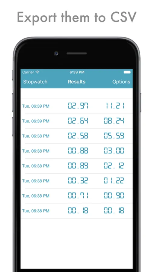 Use Ultra Chrono in the gym, classroom, kitchen, for studying, or wherever else you need time counted up and counted down. Tap to start/stop the timer, press and hold to reset. Save and export your times as a CSV by email to your friends or colleagues.